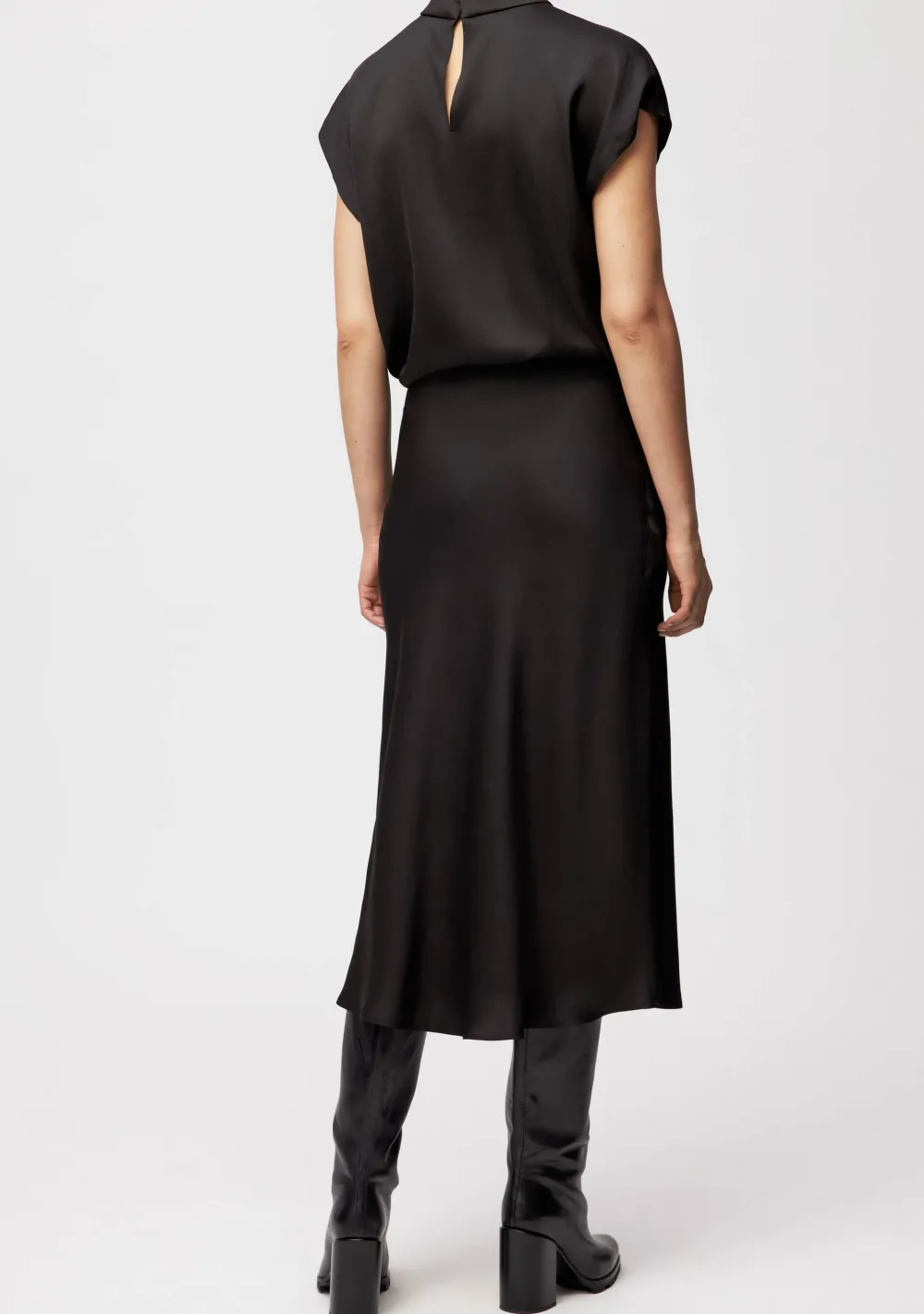 – Het model is 1.76m lang en draagt maat 28