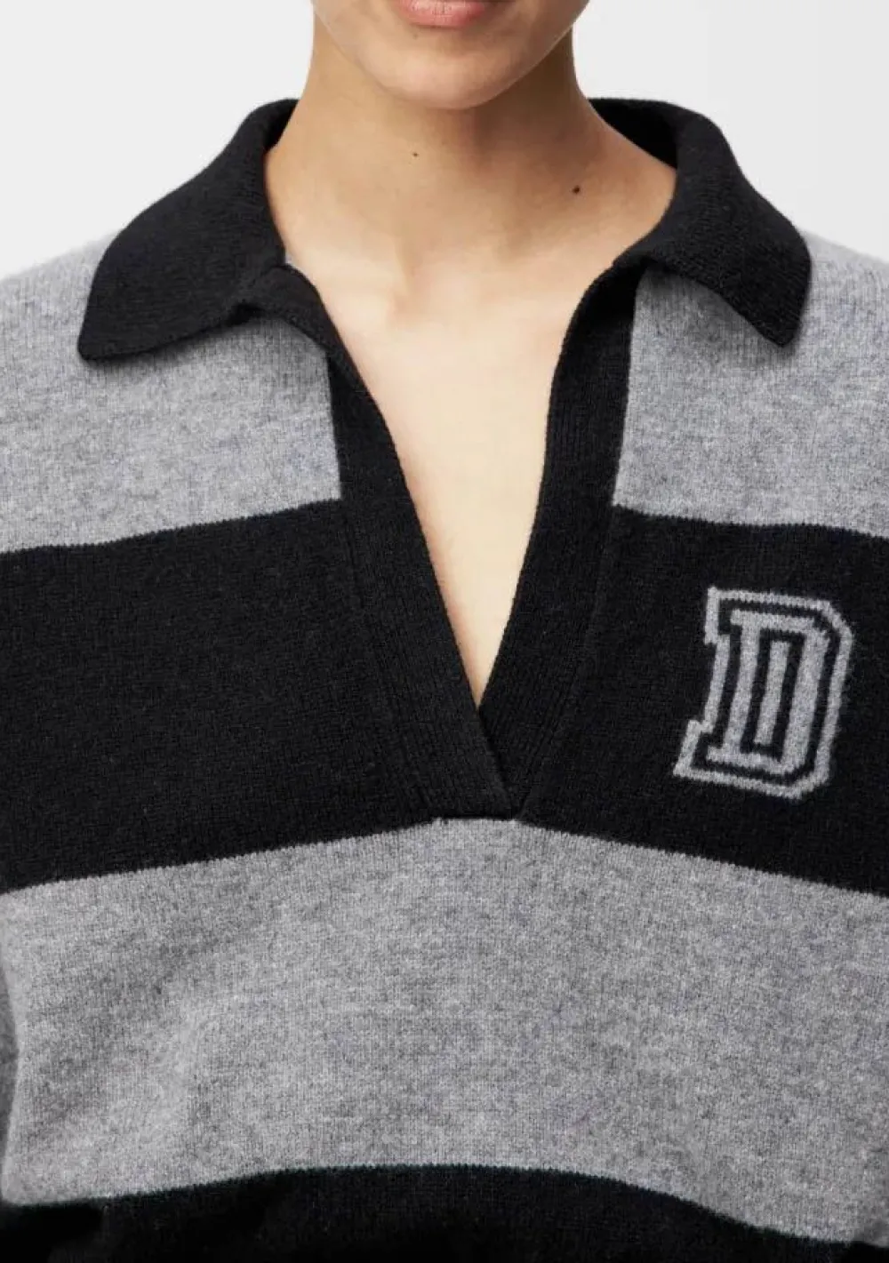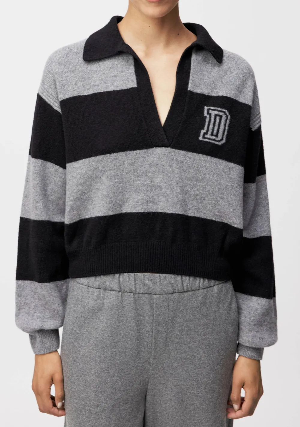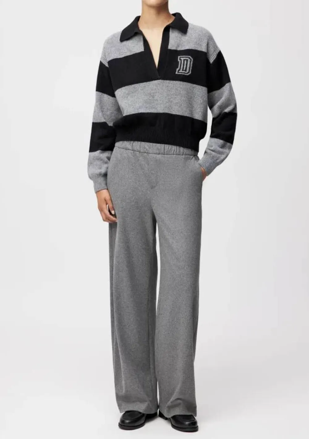 – Het model is 1.76m lang en draagt maat S
