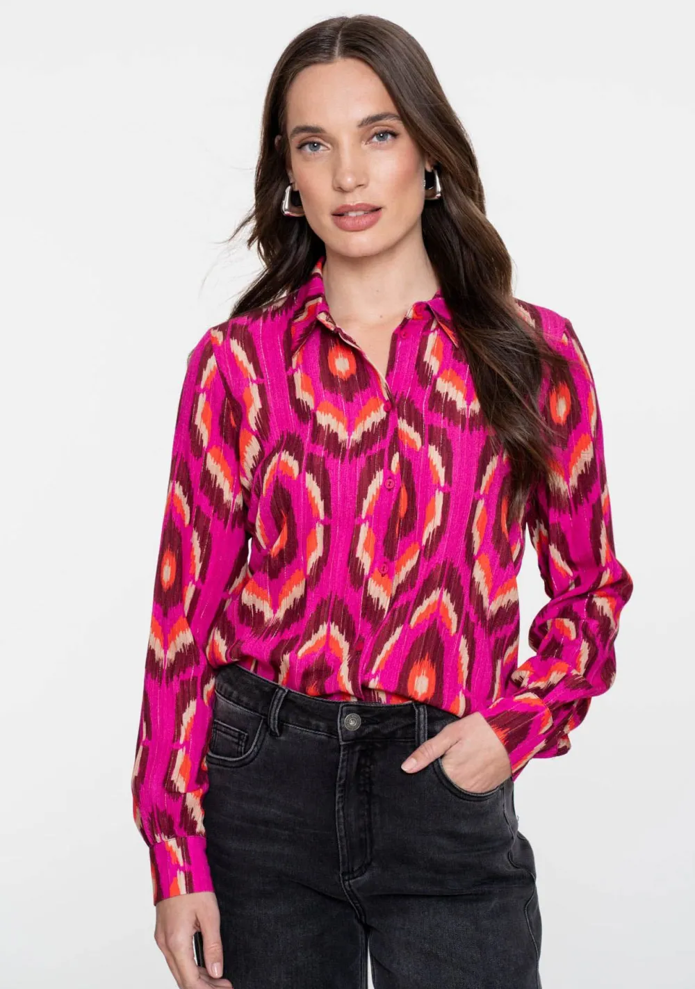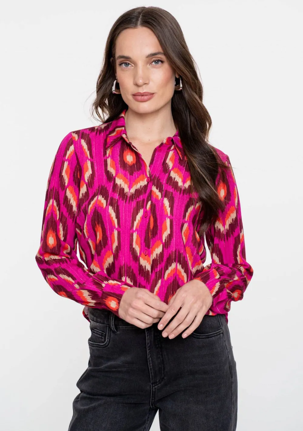 – Het model is 1.76m lang en draagt maat S