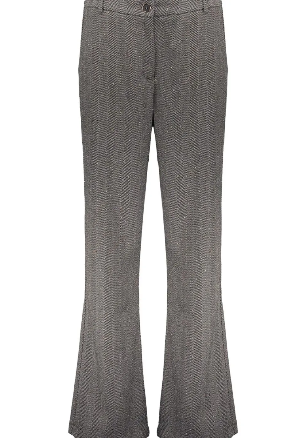 – Pantalon voorzien van steekzakken en afgewerkt met steentjes