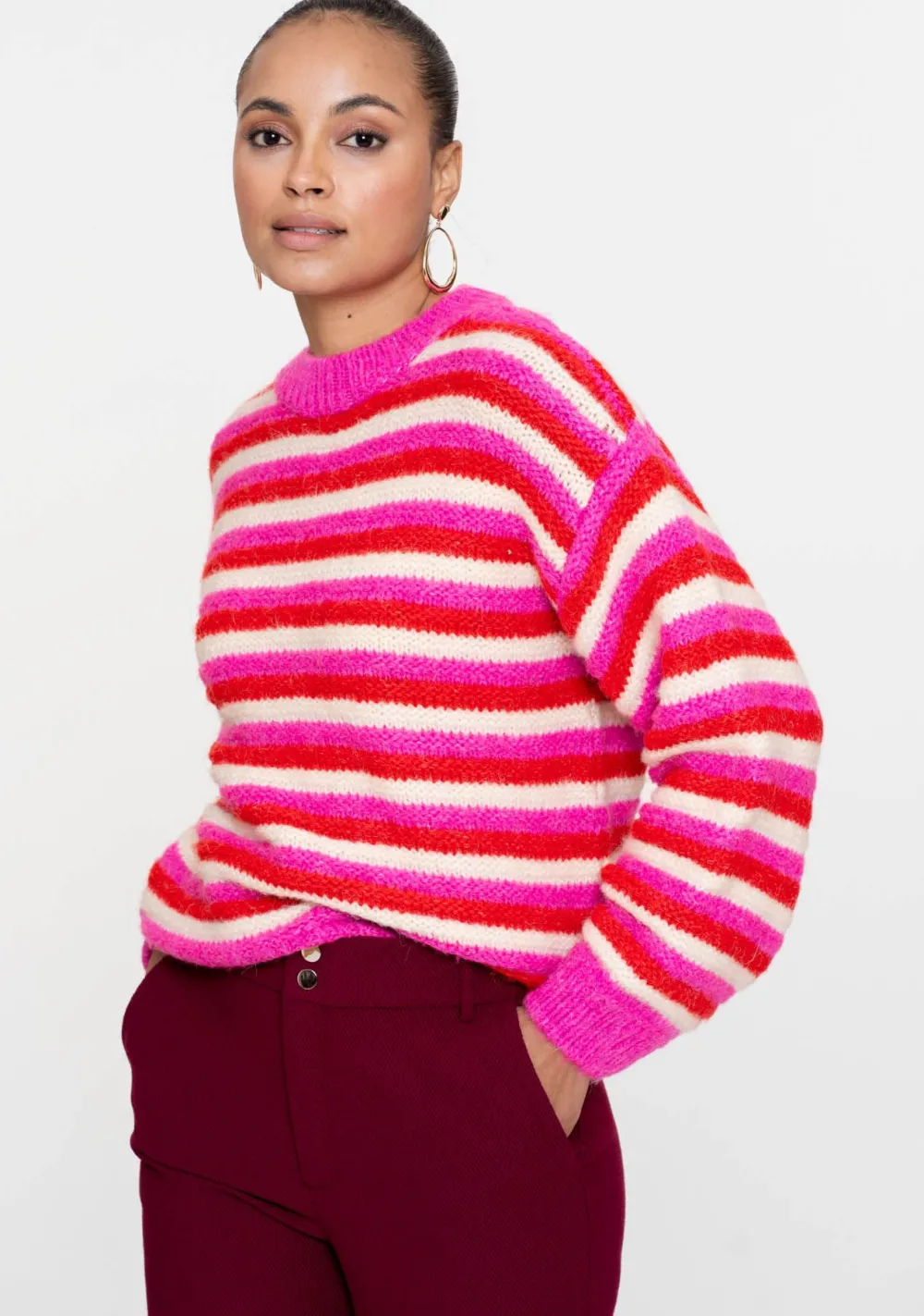– Pullover loose knit stripes is voorzien van een ronde hals