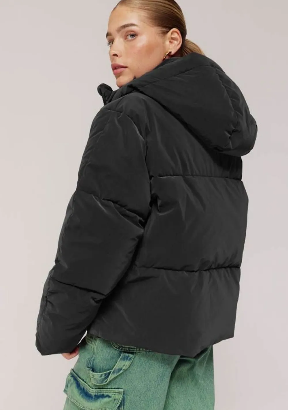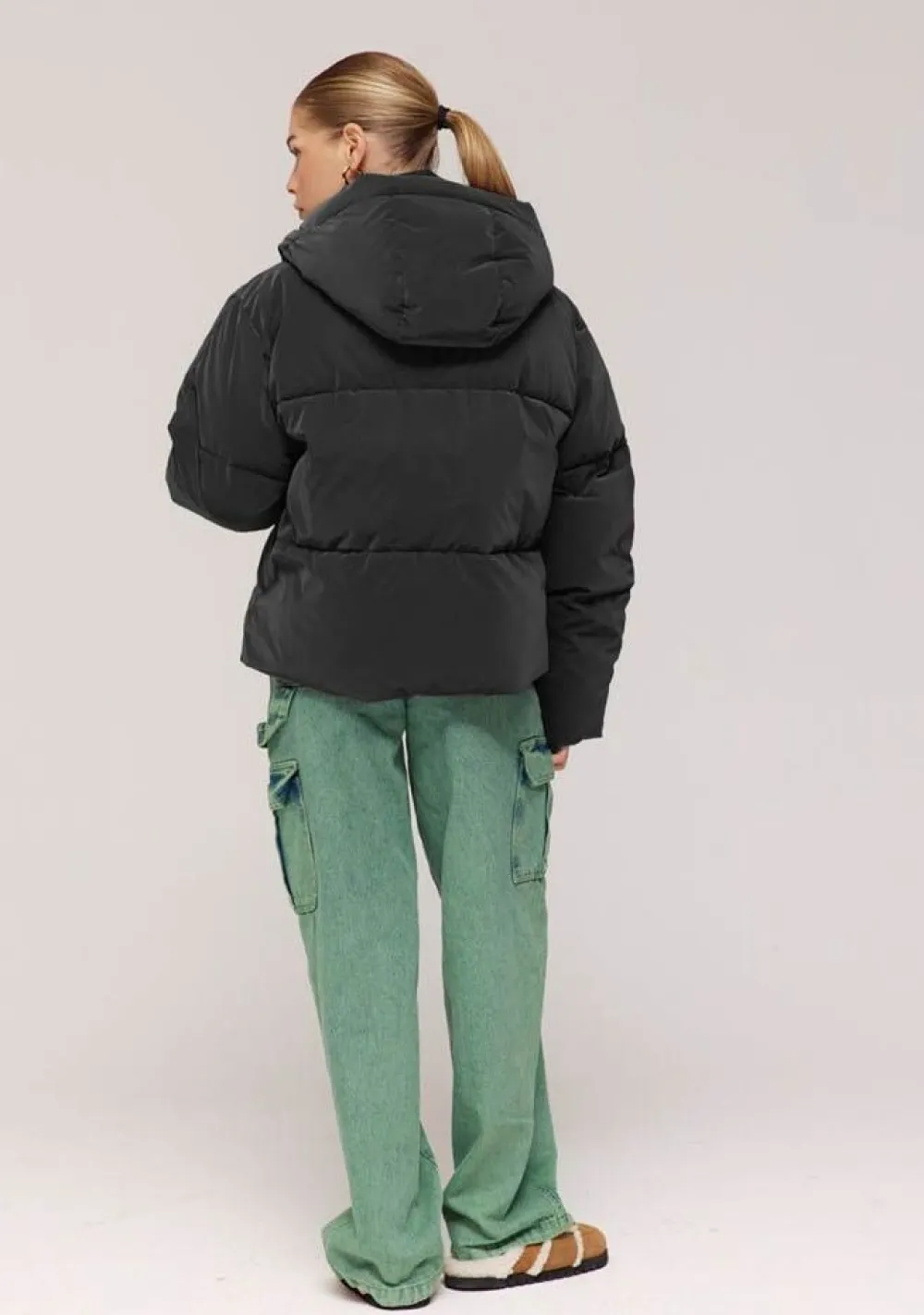 – Het model is 1.74m lang en draagt maat S