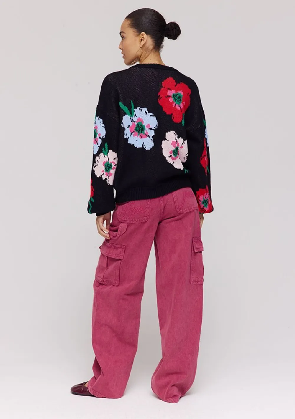 – Het model is 1.74m lang en draagt maat S