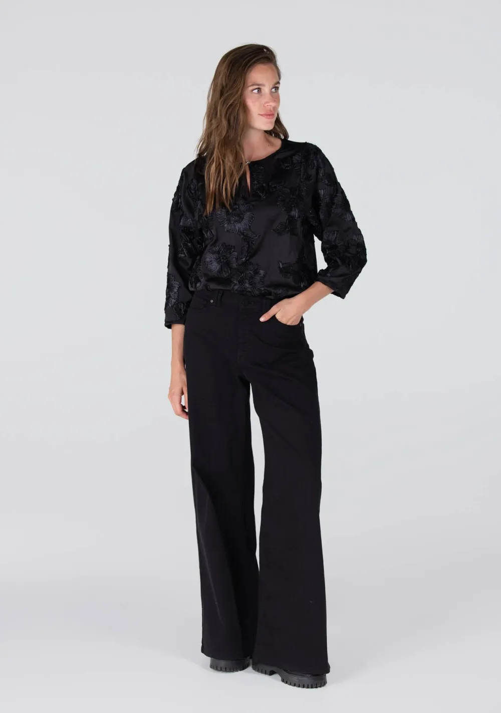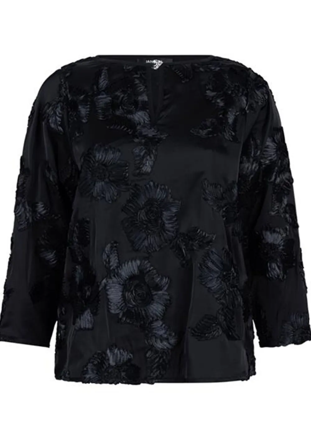 – INDI BLOUSE afgewerkt met een speels bloemen reliëf