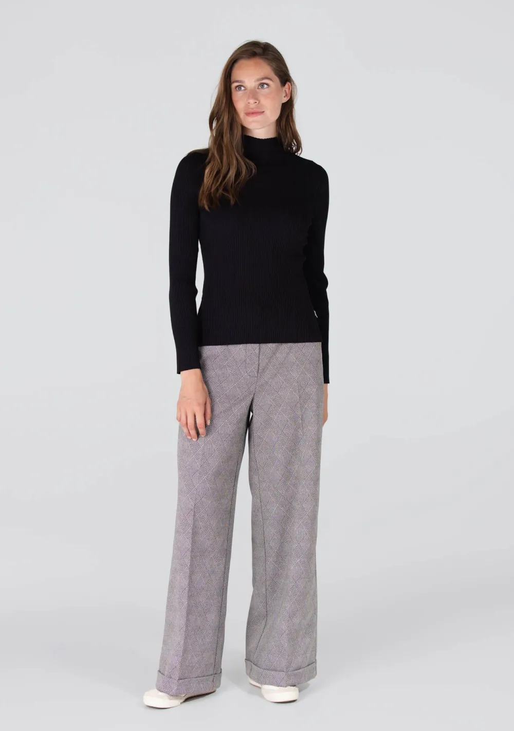 – Het model is 1.78m lang en draagt maat 36