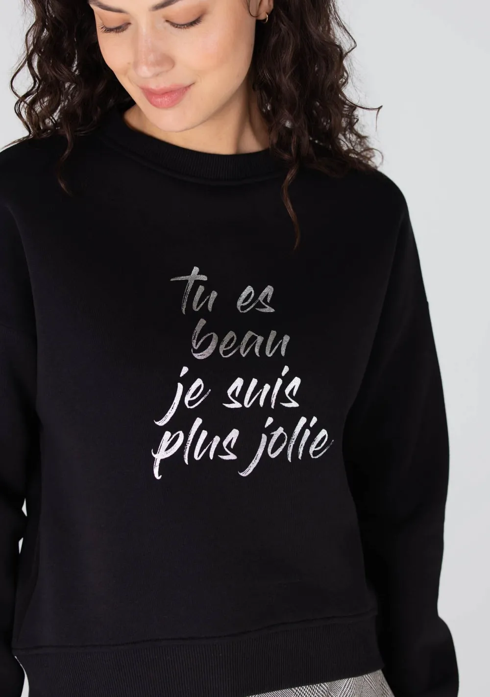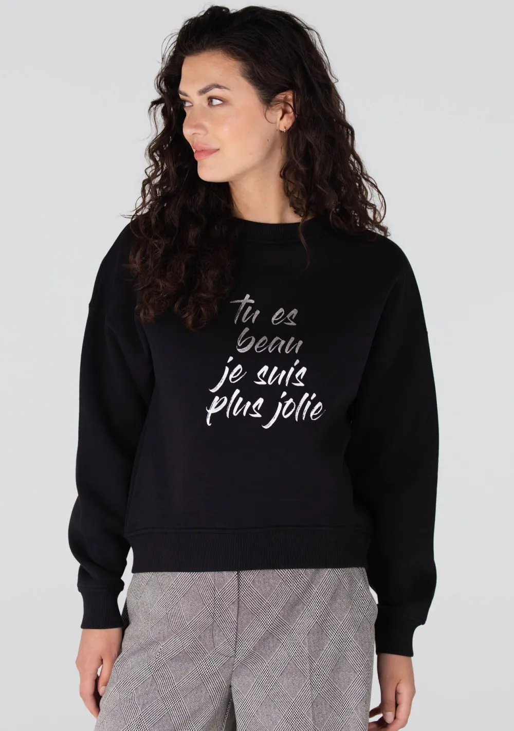 – Het model is 1.78m lang en draagt maat S