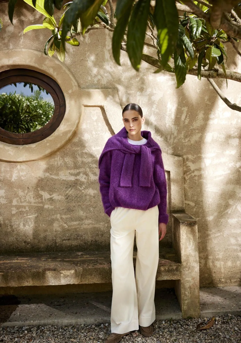 – Het model is 1.76m lang en draagt maat S