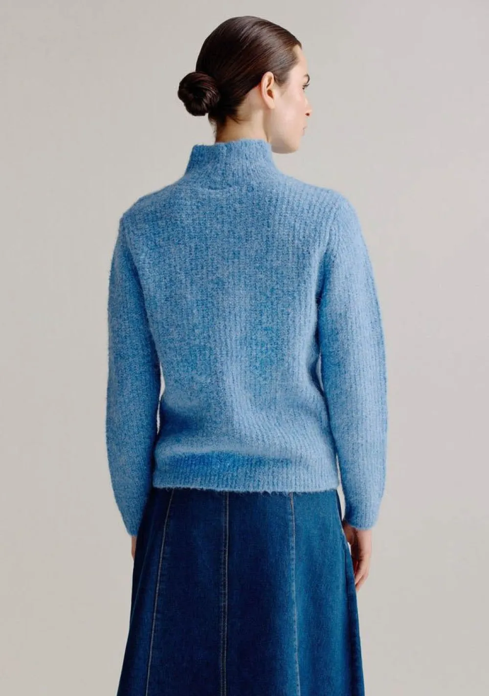 – Het model is 1.78m lang en draagt maat S