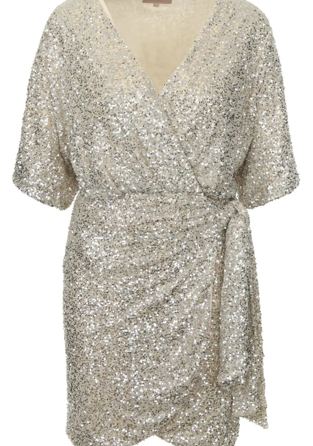 – ELKE wikkel jurk afgewerkt met een all-over pailletten detail