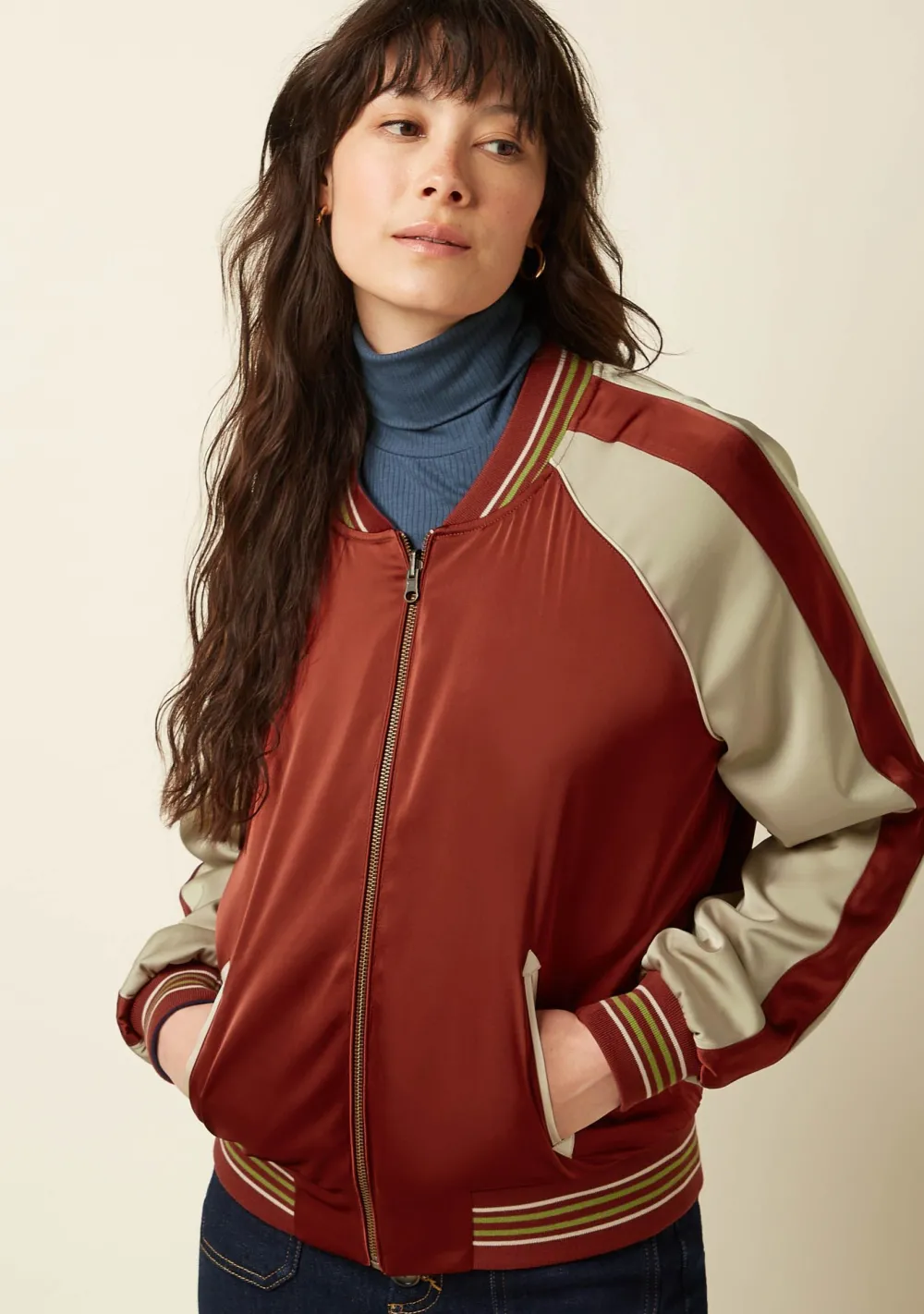 – Reversible bomber jack voorzien van steekzakken en een borduursel aan de achterzijde