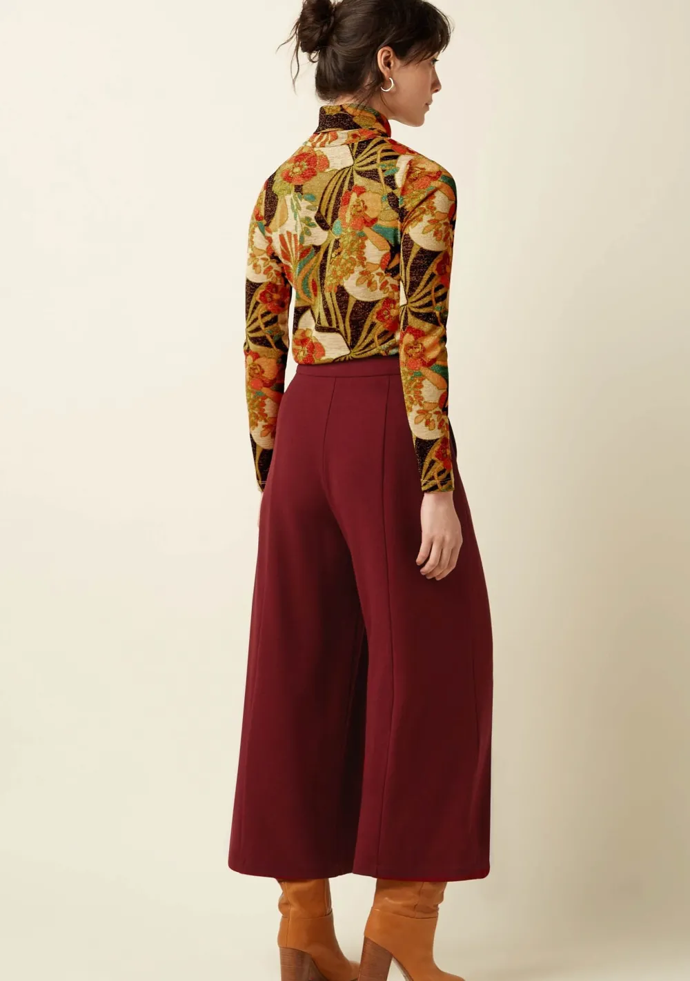 – Het model is 1.76m lang en draagt maat S