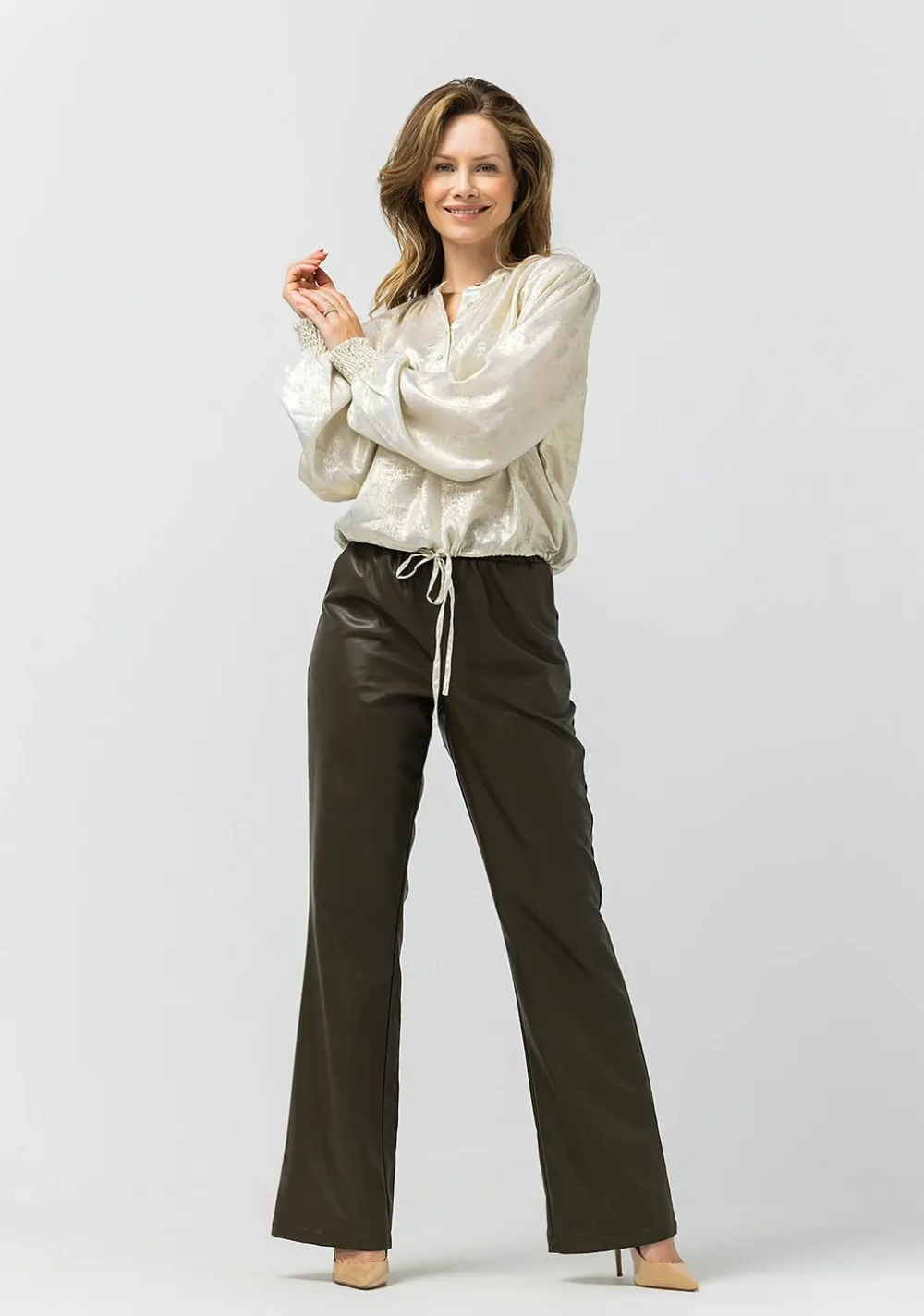 – Het model is 1.76m lang en draagt maat 36