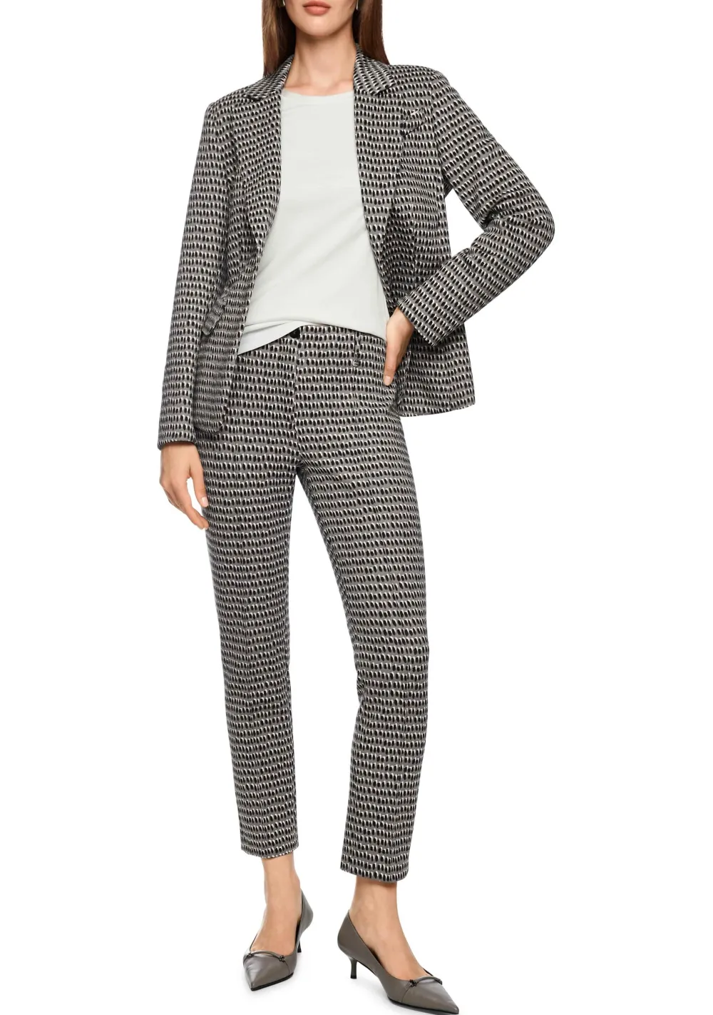 – Het model is 1.76m lang en draagt maat 38