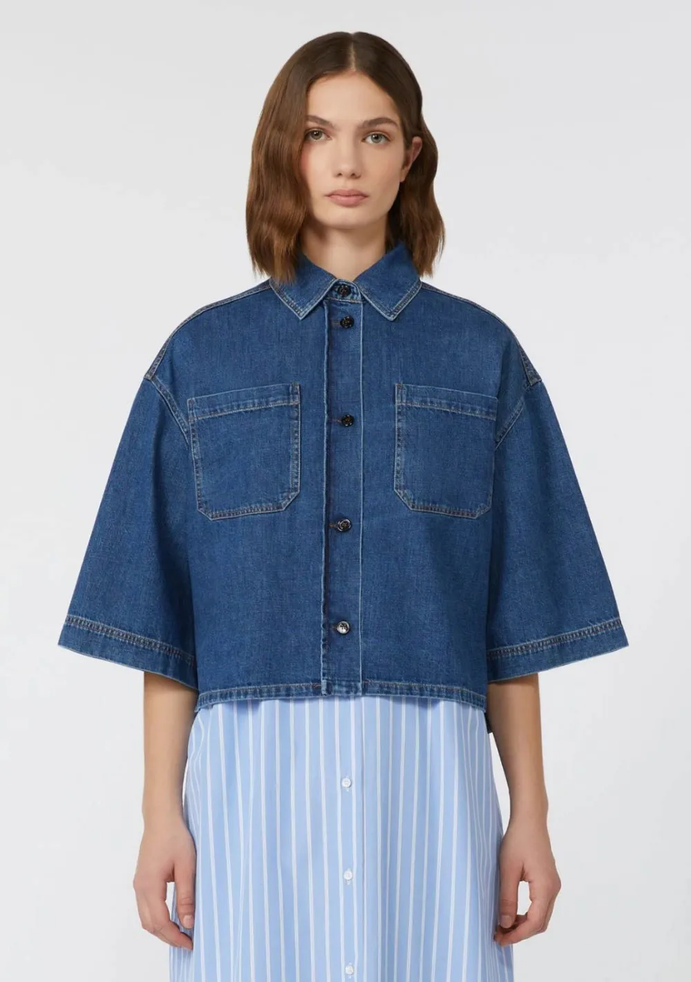 – ENZA cropped denim blouse is afgewerkt met borstzakken.