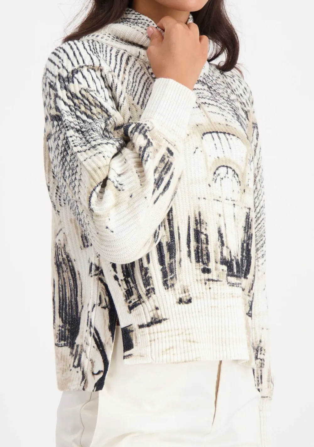 – Het model is 1.76m lang en draagt maat 38