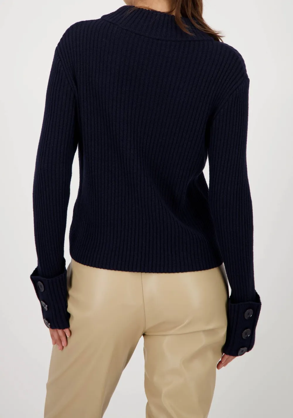 – Het model is 1.76m lang en draagt maat 38