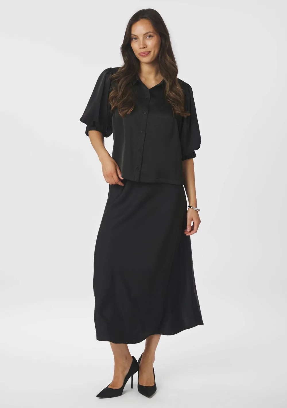 – Het model is 1.76m lang en draagt maat 36
