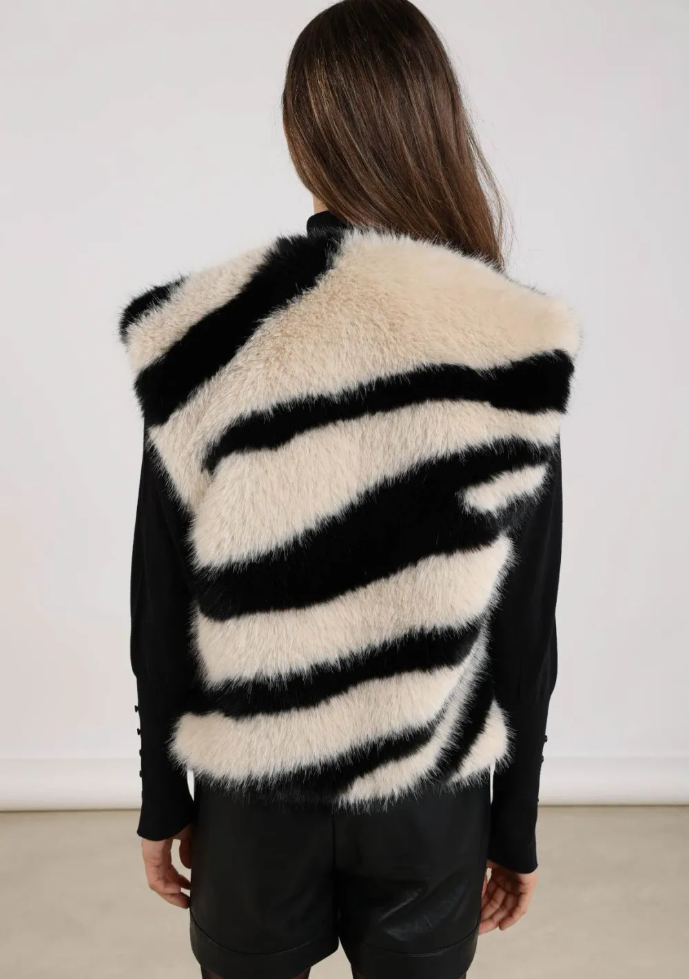 – Het model is 1.76m lang en draagt maat S