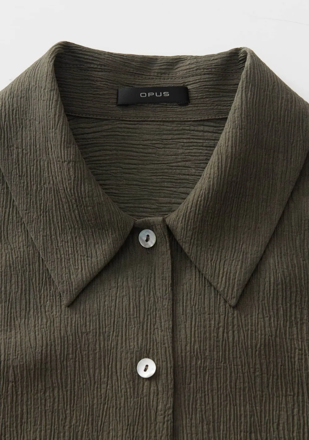 Let op: de kleur van de groene blouse kan op de foto’s afwijken. De blouse is in werkelijkheid kaki van kleur, maar kan op de foto’s soms een bruine tint lijken te hebben.