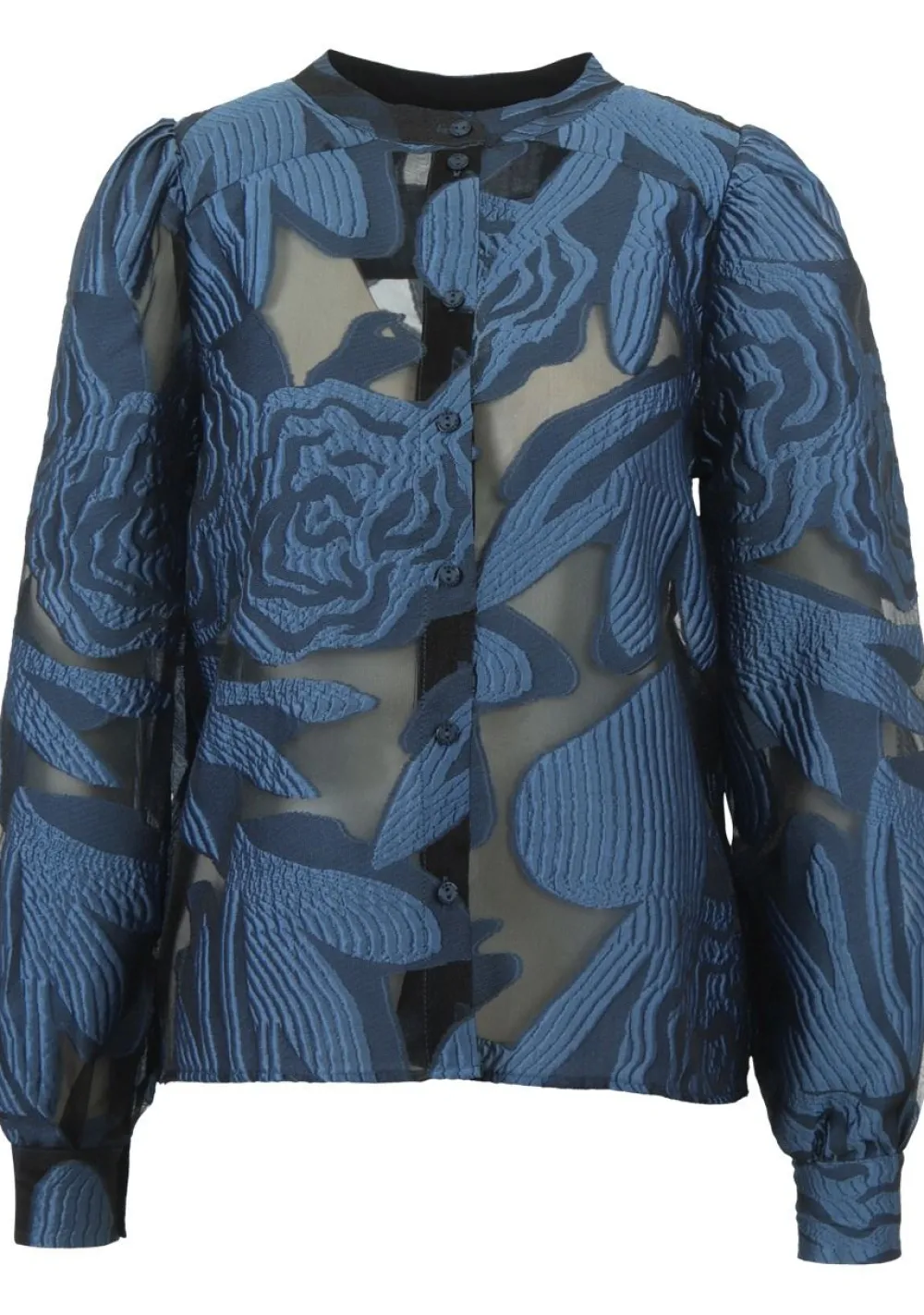 – Doorschijnende blouse afgewerkt met pofmouwen
