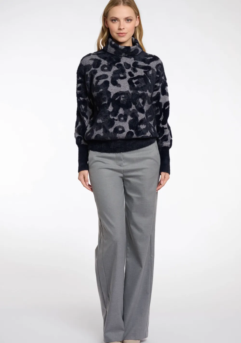 – Het model is 1.76m lang en draagt maat S