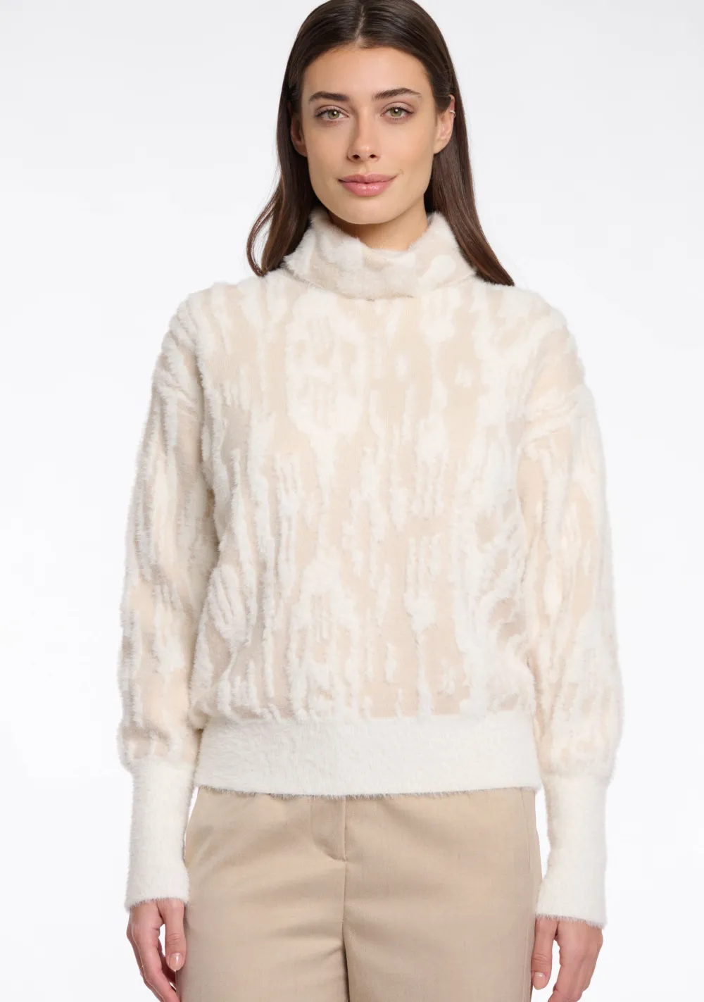 – Het model is 1.76m lang en draagt maat S