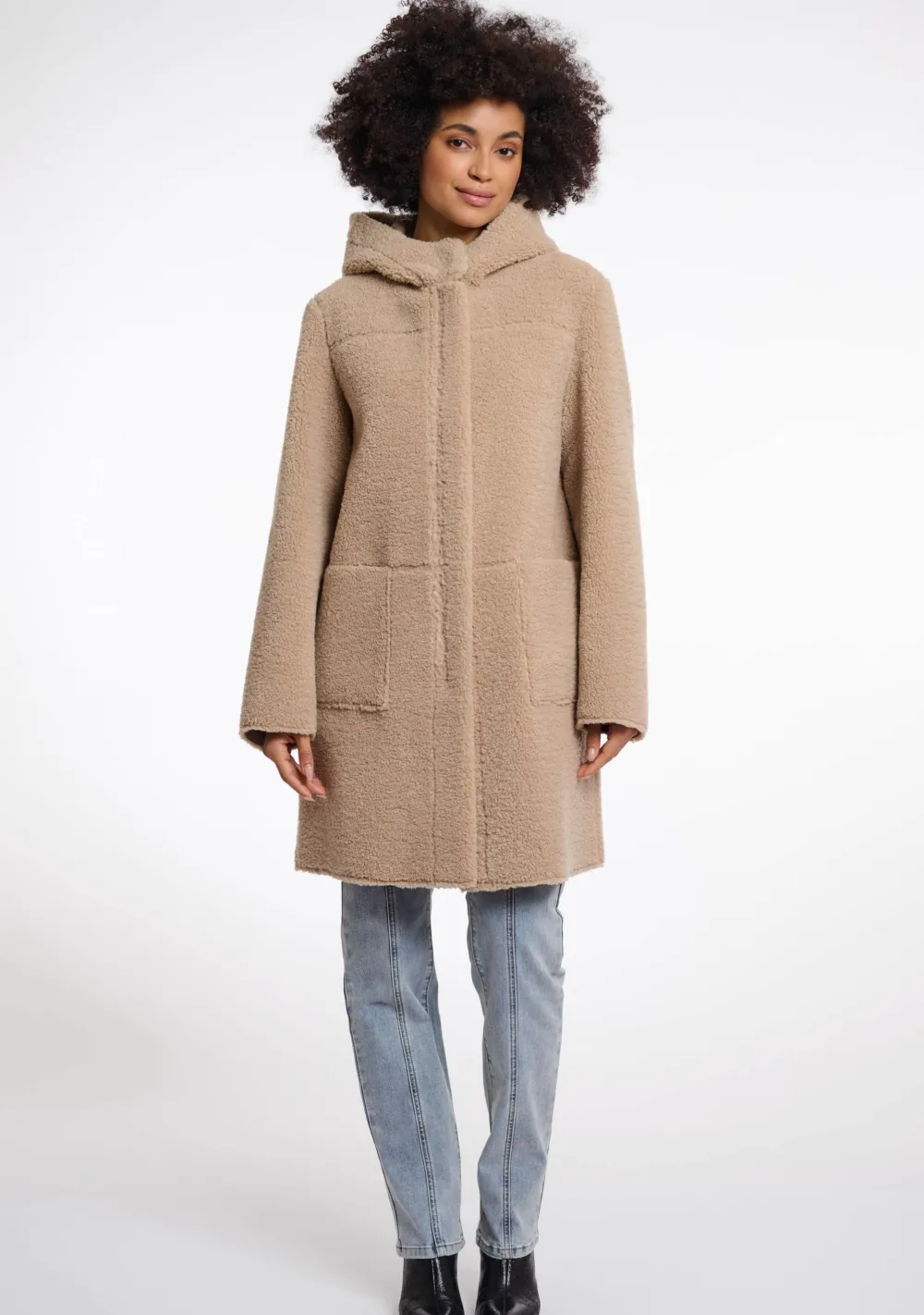 – Het model is 1.76m lang en draagt maat 38