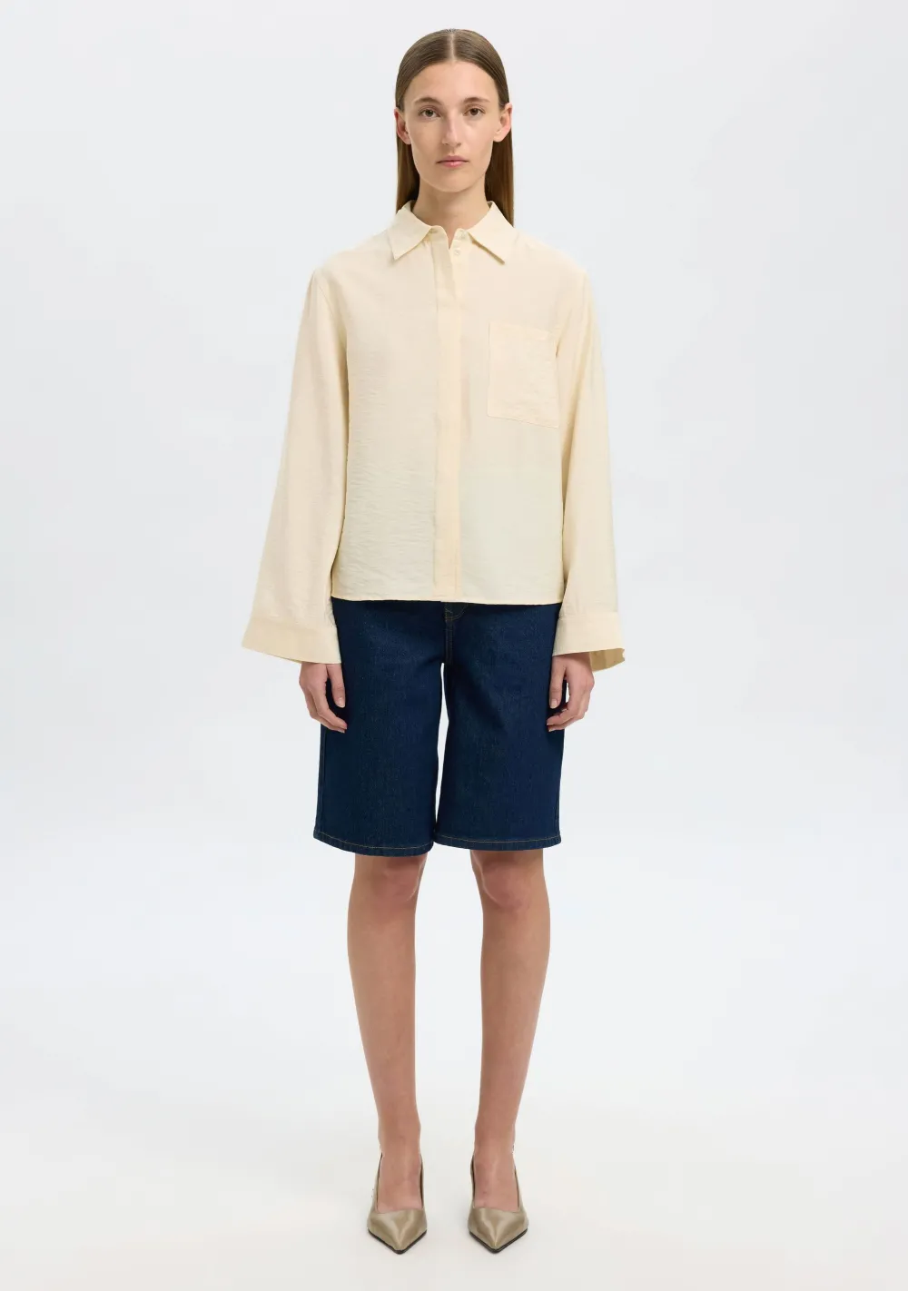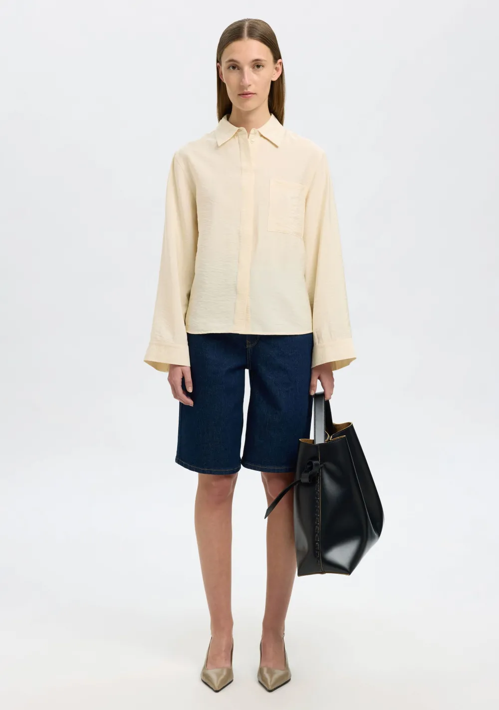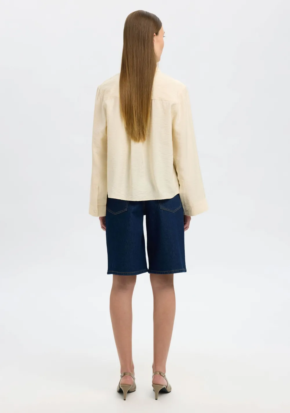 – Het model is 1.76m lang en draagt maat 36