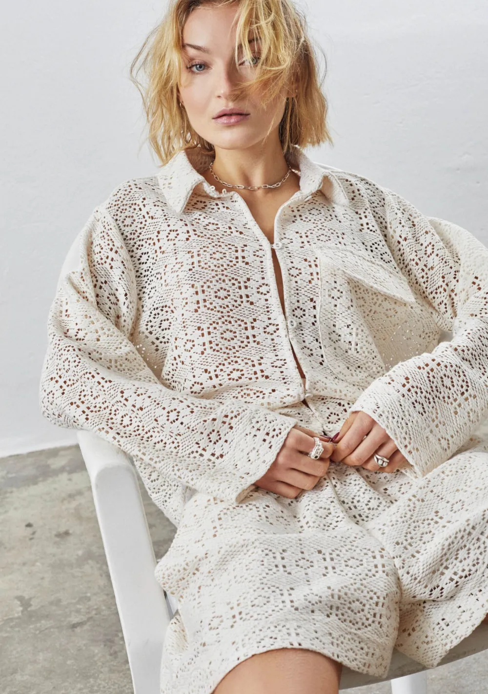 – Het model is 1.73m lang en draagt maat S