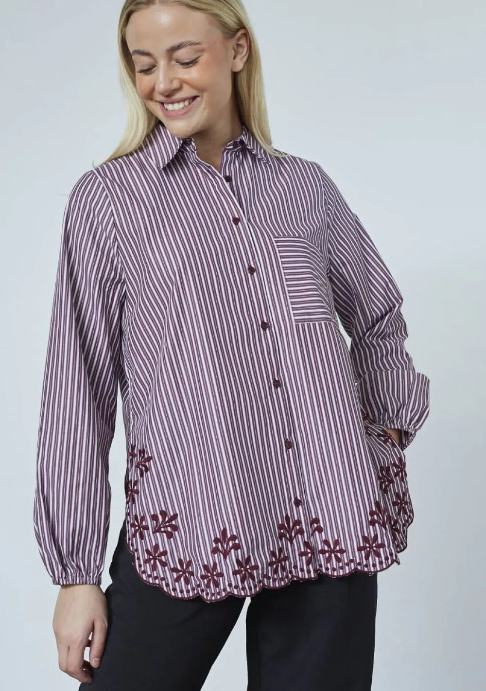 – Het model is 1.76m lang en draagt maat S