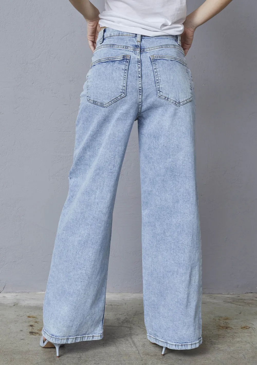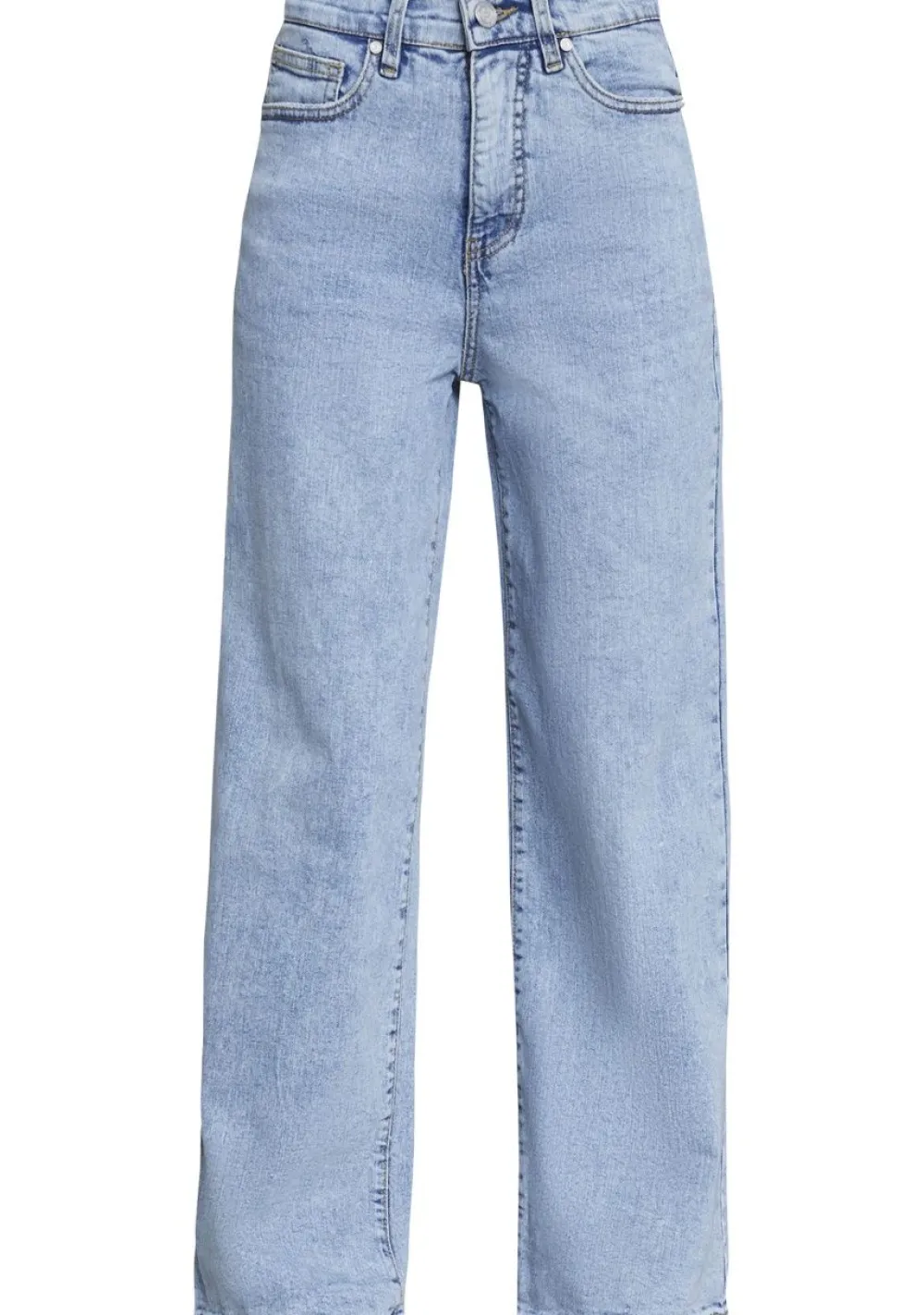 – Stretchy wide fit jeans met five pockets en riemlussen