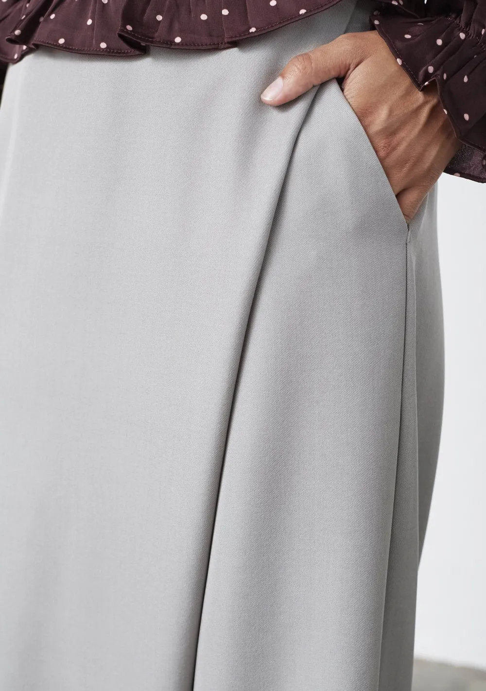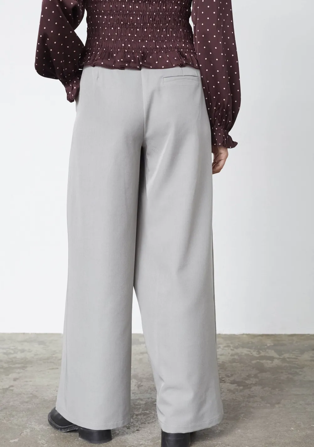 – Het model is 1.76m lang en draagt maat S