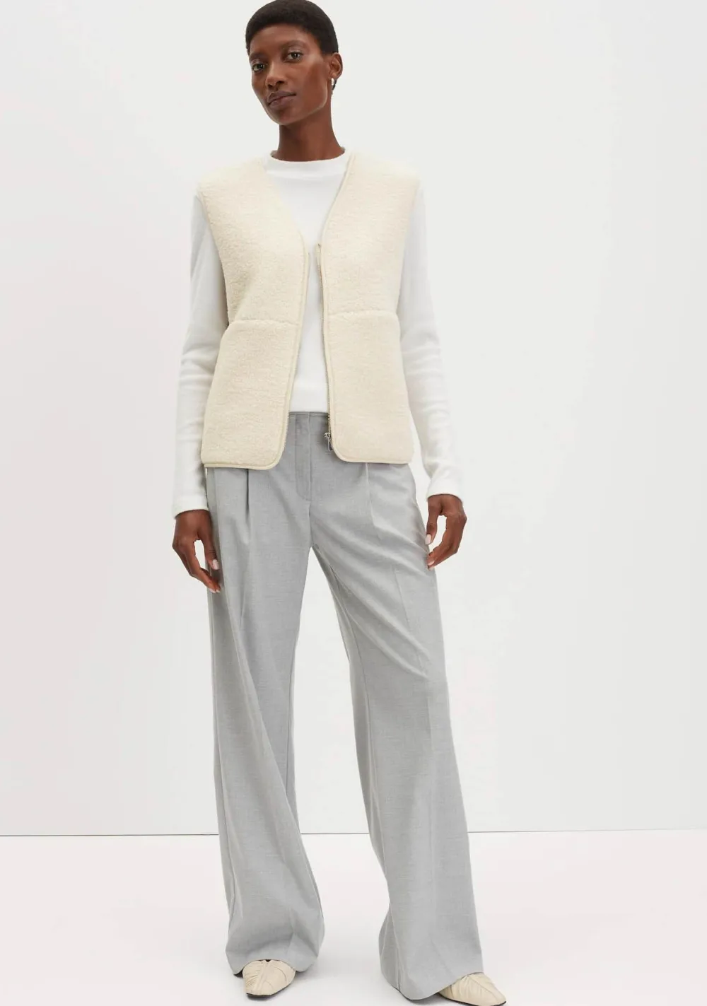 – Het model is 1.76m lang en draagt maat 36