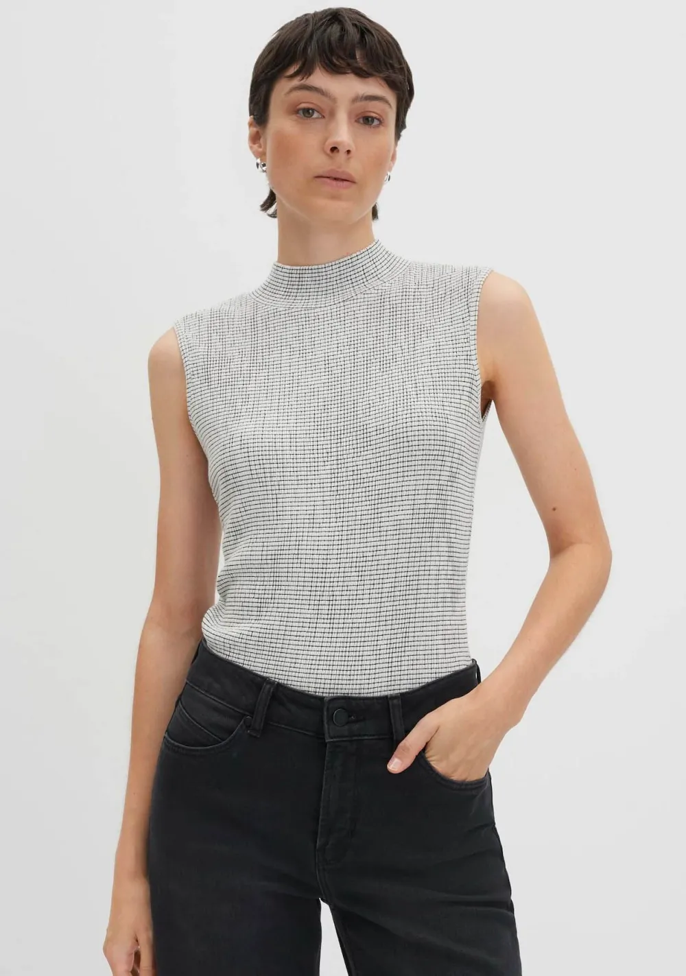 – Het model is 1.76m lang en draagt maat 36