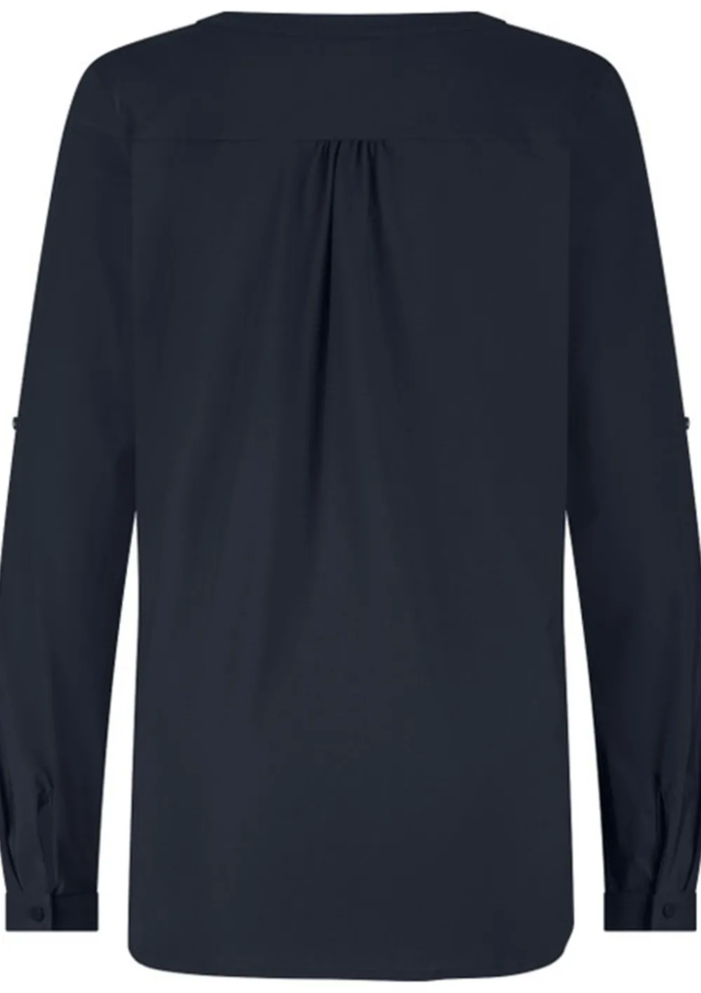 De blouse is gemaakt van 73% polyamide en 27% elastaan, wat zorgt voor een lichte stretch en een comfortabele fit. Het materiaal is van light travel kwaliteit, waardoor de stof ademend, kreukvrij en onderhoudsvriendelijk is. Perfect voor vrouwen die er graag verzorgd uitzien zonder gedoe met strijken.