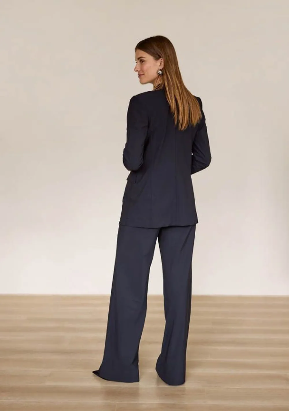 Het model op de foto is 1.79 m lang en draagt maat S, maar de elastische tailleband zorgt ervoor dat de broek zich comfortabel aanpast aan jouw lichaam. Perfect om de hele dag door stijlvol én comfortabel te blijven.