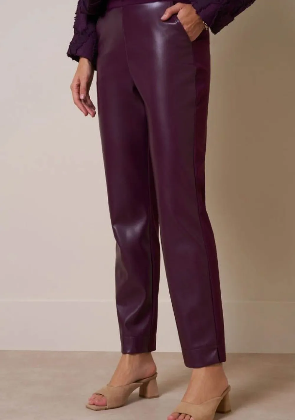 – Anne faux leather trousers voorzien van steekzakken en riemlussen