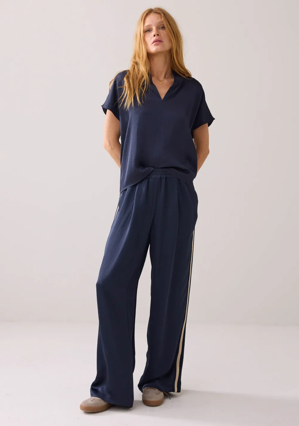 – Het model is 1.76m lang en draagt maat 36