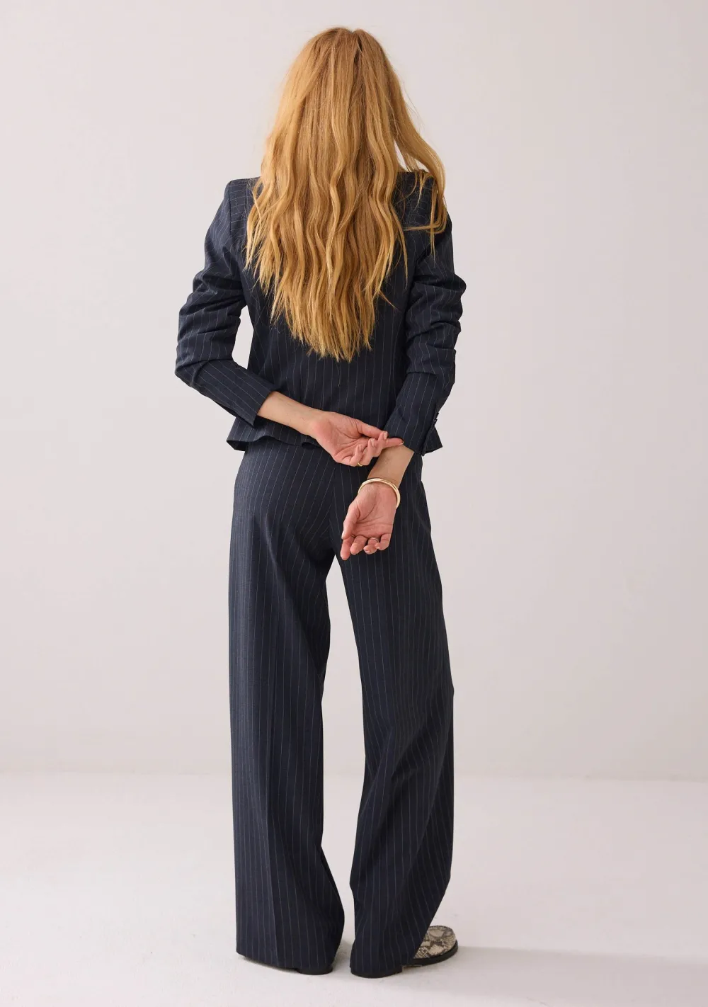 – Trousers wide leg Pinstripe is voorzien van steekzakken