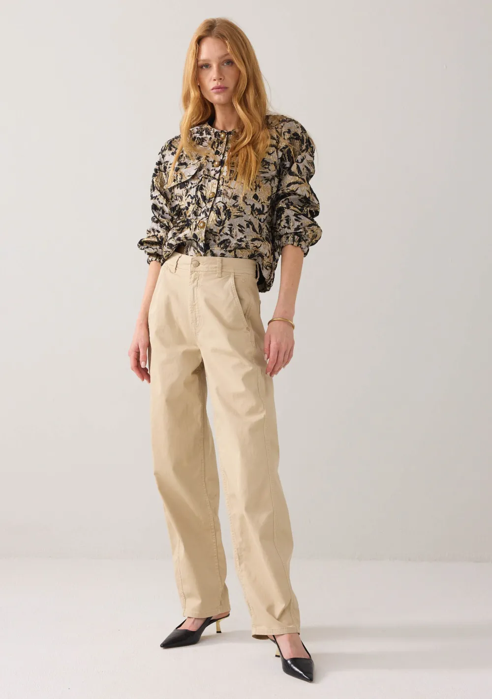 – Het model is 1.77m lang en draagt maat 36