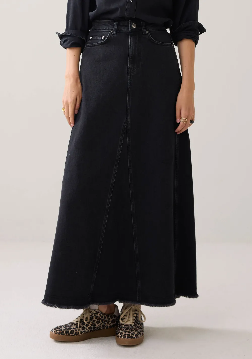 – Het model is 1.76m lang en draagt maat 36