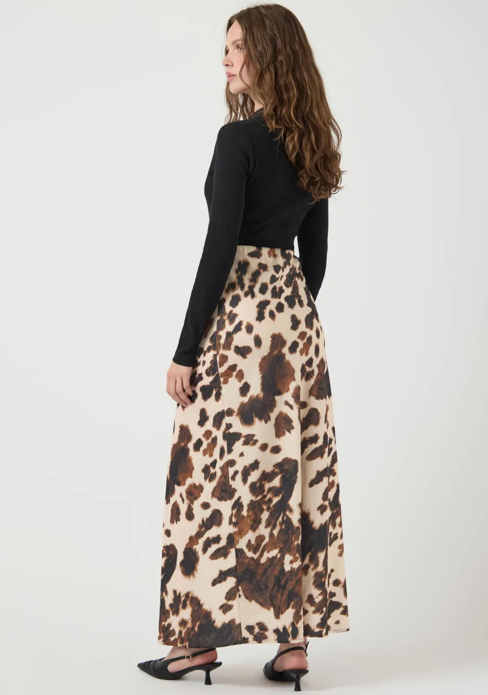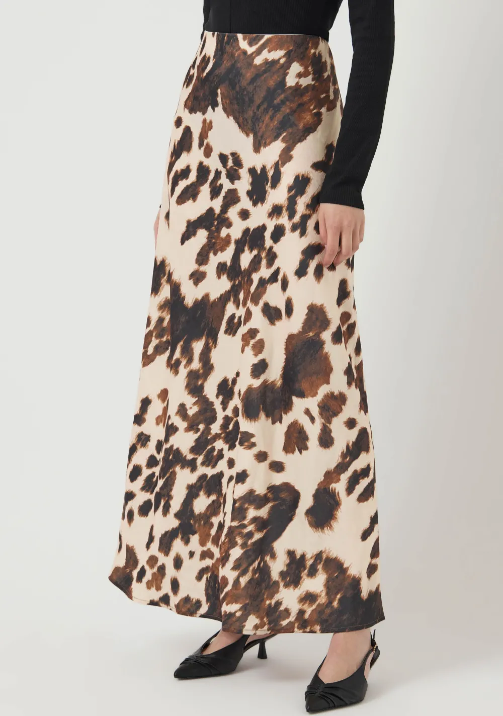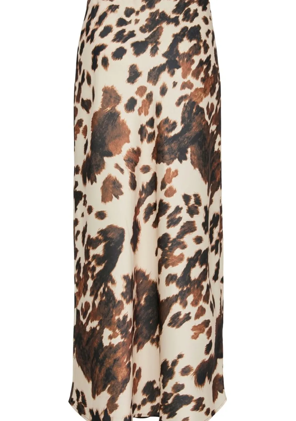 – Rok met satijnen look is voorzien van een opvallend all-over koeienvacht dessin voor een trendy statement
