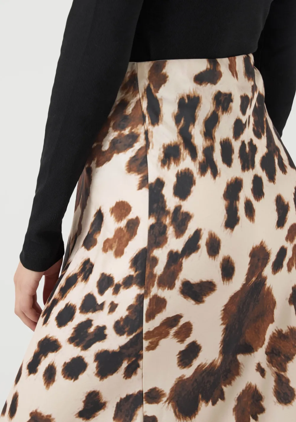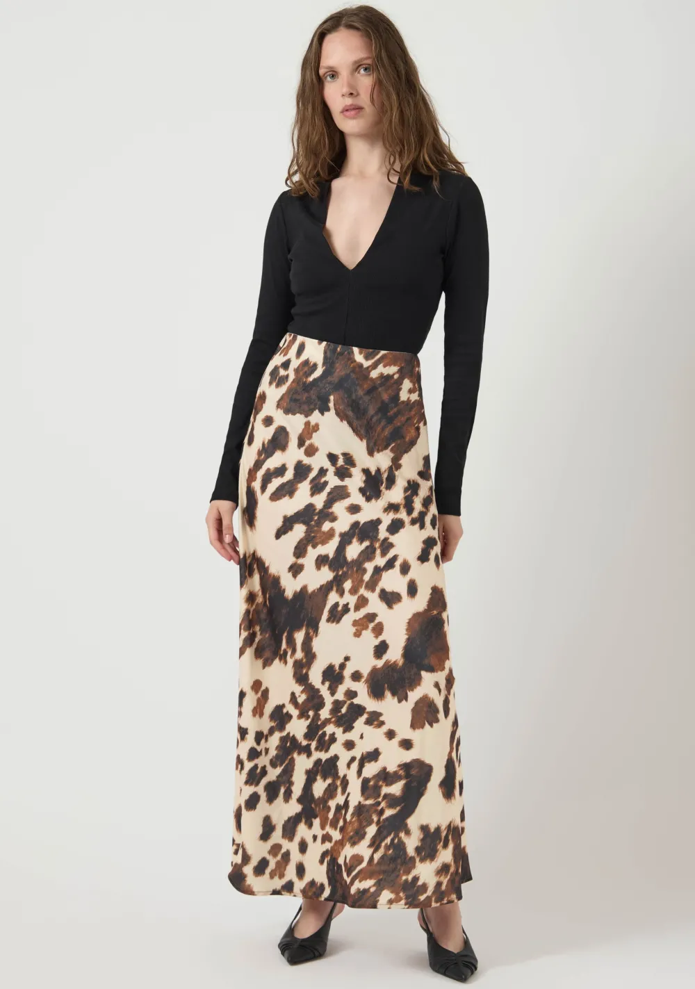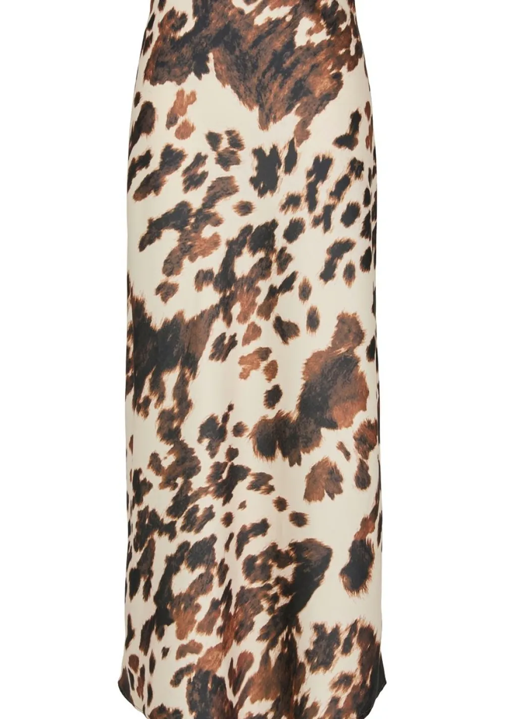 – Rok met satijnen look is voorzien van een opvallend all-over koeienvacht dessin voor een trendy statement