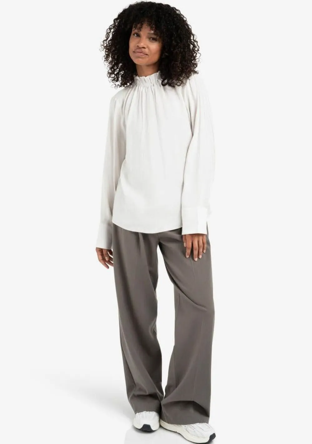 – Het model is 1.76m lang en draagt maat S